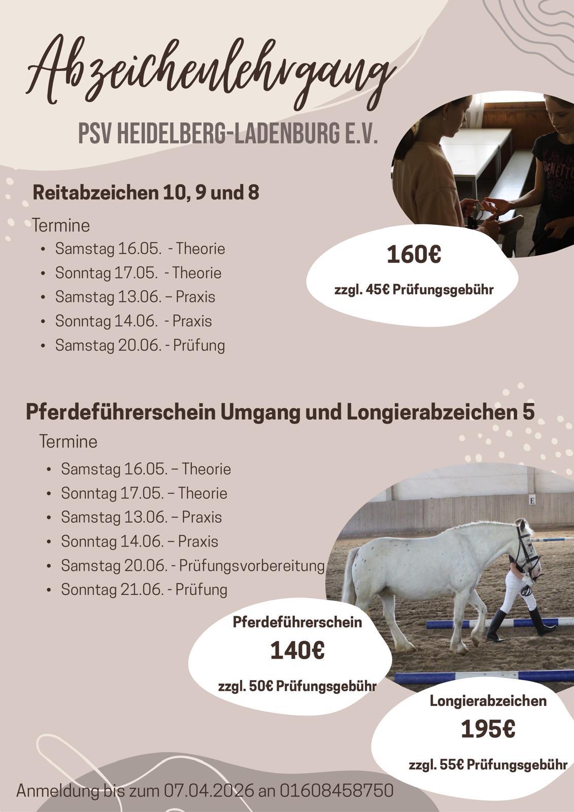 Alle Informationen zu den möglichen Abzeichen, Kursen und Kosten finden Sie im Flyer.